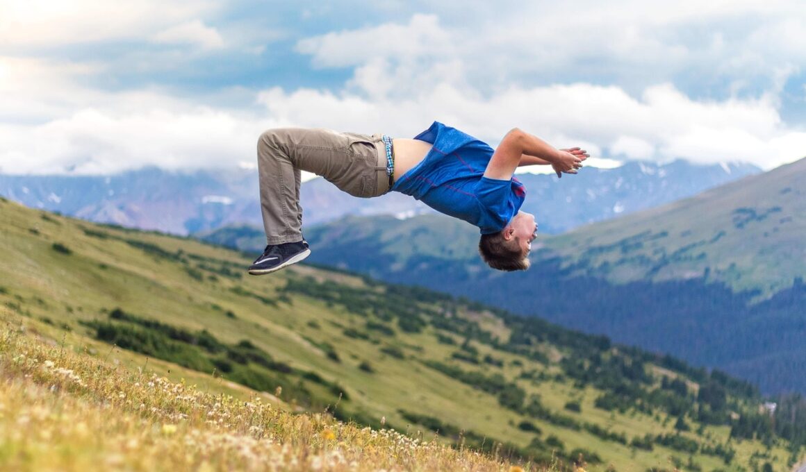 Balancing tumbling skills with artistic gymnastics also entails a comprehensive approach to strength and conditioning. A strong foundation in physical conditioning is vital for performance enhancement. Gymnasts must develop core strength, flexibility, and overall body control. Strengthening the core allows better support during complex tumbles and improves overall technique. Resistance training, along with functional movements, helps achieve peak performance efficiently. Furthermore, flexibility deeply influences tumbling abilities. The greater an athlete’s flexibility, the more likely they are to execute high-level skills successfully. Dynamic stretching routines can enhance flexibility and warm up targeted muscle groups effectively. Plyometric exercises are also essential, improving explosiveness during tumbling passes. These exercises build strength and help gymnasts rocket into the air during flips and twists. Conditioning routines should incorporate upper and lower body strength training, giving athletes a balanced approach. Additionally, recovery plans are just as crucial. Adequate rest days allow muscles to recover fully, ensuring that athletes prevent fatigue. Maintaining a well-rounded conditioning program ultimately contributes to consistent performance improvements. This holistic approach integrates all aspects of gymnastic training, from strength building to skill refinement.
