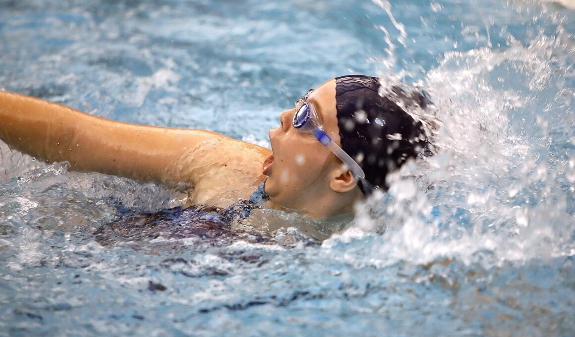 Another critical element of swimming conditioning includes cross-training methods that augment specific skills required in the pool. Cross-training introduces variety and minimizes the potential for overuse injuries while simultaneously improving overall athleticism. Activities like cycling, rowing, and resistance training can enhance cardiovascular fitness and build muscle strength in ways that directly benefit swimming. For example, cycling develops leg strength and endurance, which translates to powerful kicks and increased speed in the water. Resistance training, targeting the upper body and core, is vital for developing the strength necessary for effective pulling through the water. Additionally, practicing yoga can improve flexibility and balance, both crucial for maintaining proper strokes. By diversifying one’s workouts through cross-training, swimmers create well-rounded conditioning programs. The variety also maintains motivation and reduces monotony associated with a single form of exercise. Ultimately, implementing cross-training can play a pivotal role in elevating swimming performance, as it allows athletes to strengthen various muscle groups while honing swimming-specific skills.