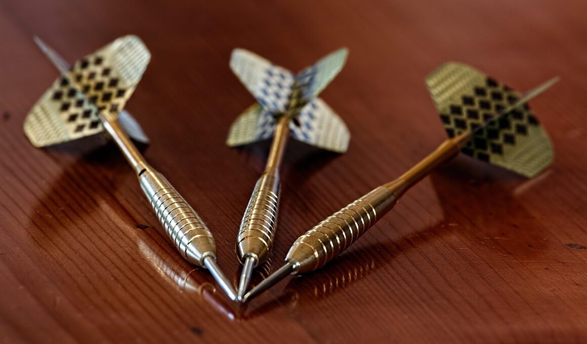 Weight is another important factor to weigh when customizing darts. The overall weight of darts dictates how they are launched and their stability during flight. Heavier darts tend to fly straighter, especially when thrown with force. Lighter darts, however, might offer better control for players who favor finesse. It’s crucial to find a balance that works specifically for you. Many manufacturers allow for customization through adjustable weights, allowing you to fine-tune based on your style. Furthermore, varying weights can facilitate alterations in play depending on the game. For example, utilizing heavier darts in casual play may build a player’s muscle memory and confidence. However, engaging in competitive scenarios may require transitioning to lighter darts, improving accuracy. Always remember to practice with your customized weight choices to build familiarity. Changing tip styles also affects how weight is perceived; a different tip could dramatically change the way a dart feels in hand or during flight. Trial and error play significant roles in perfecting your personalized darts as players explore different combinations that yield effective results.