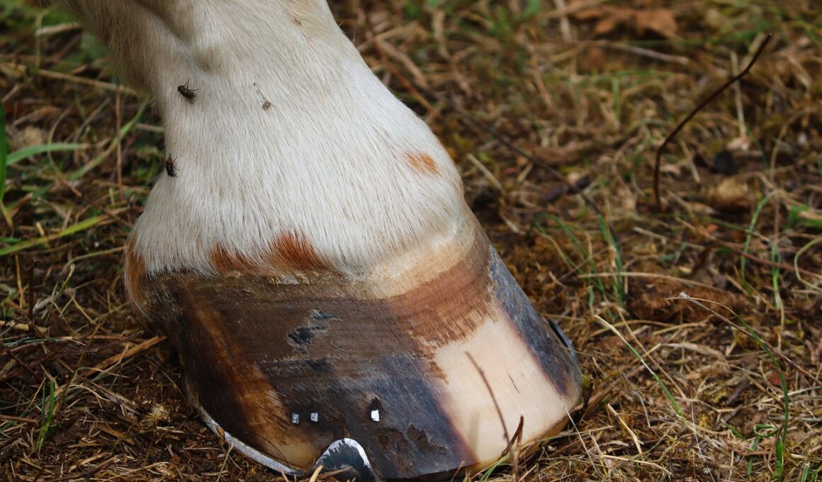 Nutritional aspects significantly impact hoof health. A balanced diet is crucial for supporting keratin production, the main component of the hoof wall. Key nutrients such as biotin, zinc, and methionine play a pivotal role in hoof strength. Providing high-quality forage, grains, and specific supplements will ensure the horse receives all needed nutrients. Consult your veterinarian or an equine nutritionist for personalized dietary advice based on the horse’s breeding, age, and activity level. The water consumption of horses also plays a vital role in maintaining overall hoof health; thus, ensuring regular access to clean, fresh water is necessary. A proper diet alone cannot guarantee health, but it sets a solid foundation. Monitoring dietary changes during season transitions is also essential, as needs may vary with physical demands or weather changes. Combining good nutrition with diligent hoof care leads to happier, healthier horses. Adaptation of the diet may be necessary to suit individual horse requirements. Keep records of nutritional intake and hoof care practices to monitor changes and address any areas requiring improvements.