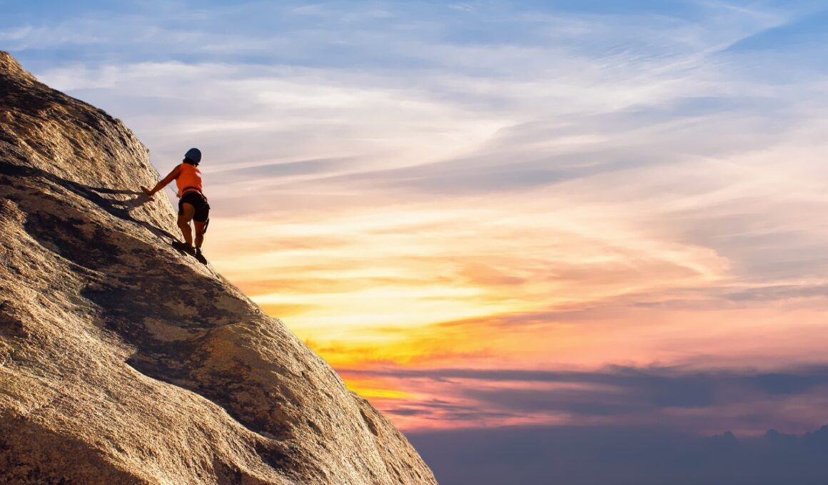 Climbing photography combines two adventurous worlds: climbing and photography. To capture breathtaking images, it’s essential to focus on technique, equipment, and timing. One foundational tip is to understand your subject. Spend time observing climbers as they navigate routes, noting their movements and forms. Familiarity allows photographers to anticipate crucial moments and leverage them in their shots. Furthermore, the golden hour—just after sunrise and before sunset—offers the most flattering natural light for stunning images. This time not only enhances colors and textures but also minimizes harsh shadows that could distract your viewer. Additionally, experimenting with various angles helps create dynamic photographs. Climbing scenes can be shot from below, at eye level, or high above to show the cliff face. The difference in perspective can radically change the image’s impact. Another helpful tip is to use a faster shutter speed to freeze the climber in action. Lastly, don’t forget about the background; incorporating beautiful scenery adds depth to your shots. In summary, make these considerations for effective climbing photography that tells a compelling story.