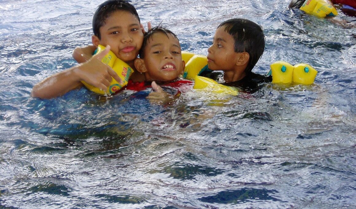 Another important factor in creating a positive swimming environment is the physical setting of the pool itself. A clean, well-maintained facility goes a long way in attracting and retaining young swimmers. The temperature of the water should be appropriate for children; this can help ensure they are comfortable during lessons. If the environment is too cold or hot, it may discourage children from wanting to participate. Additionally, consider the overall ambiance of the area. Visibility and proper lighting are crucial; children should feel safe and not anxious about their surroundings. Supervision is vital, both from lifeguards and instructors. Properly trained staff should monitor swimmers actively to ensure safety without instilling fear. Also, inviting family and friends to observe lessons can help foster a support system. This can create excitement and anticipation for each lesson. Creating small groups during training can also cultivate camaraderie among peers, allowing children to motivate and support each other. By developing a conducive physical environment, the likelihood of children enjoying swimming increases significantly, promoting a lifelong passion for this essential life skill.