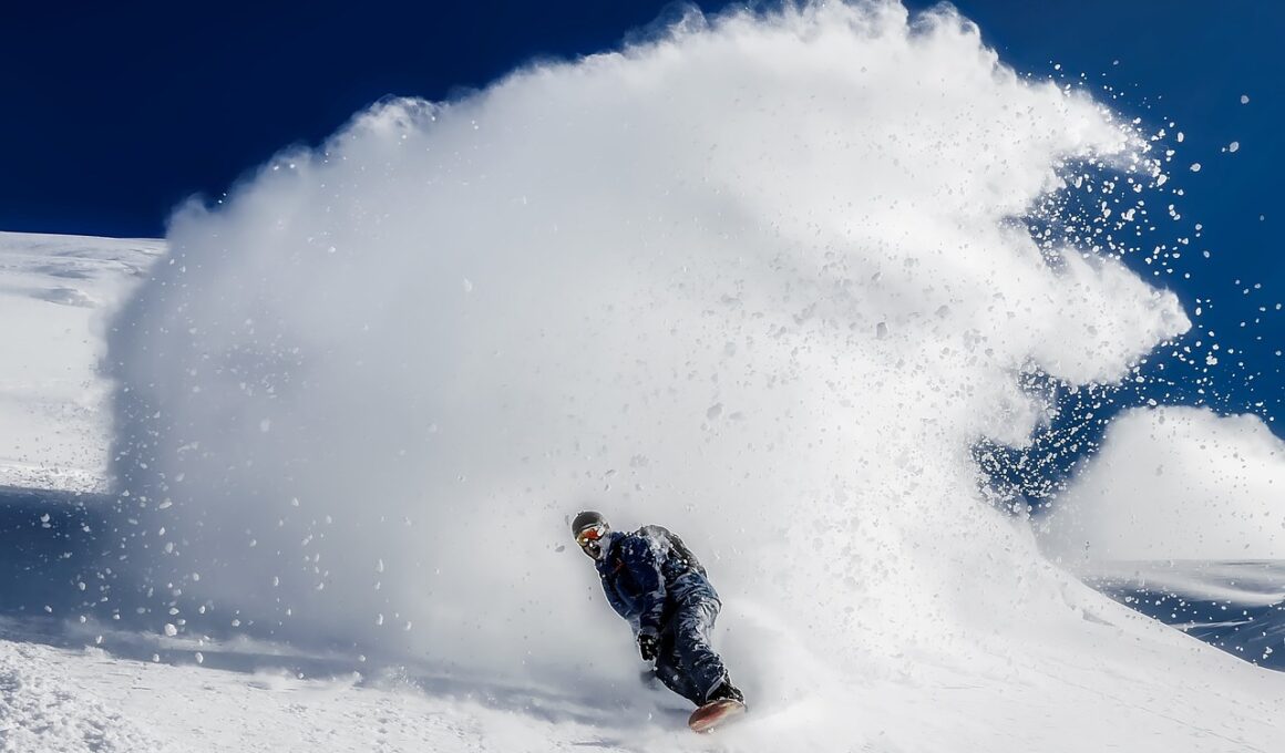 Nutrition also plays a critical role in effective off-season training. A balanced diet rich in lean proteins, whole grains, fruits, and vegetables provides the necessary fuel for your body. High-quality protein sources support muscle recovery after workouts. Incorporating complex carbohydrates ensures prolonged energy levels throughout your training sessions. Make sure to hydrate adequately; electrolytes are crucial during intense training. Keeping your body hydrated aids in better performance and recovery. Additionally, consider supplements such as omega-3 fatty acids to reduce inflammation and support joint health. Monitoring your caloric intake is essential; a calorie surplus might be necessary if you aim to build muscle. Consult a nutritionist for personalized advice tailored to your snowboarding goals. Awareness of what you eat can significantly enhance your physical capabilities and endurance. Preparing nutritious meals in advance can help you maintain consistency while training. Lastly, don’t forget to include recovery meals post-training to help muscle tissue repair faster. Pay attention to any dietary restrictions or preferences, ensuring that the foods consumed align with your health and fitness targets. Evaluate your dietary habits regularly to ensure optimal nutrition during the off-season.
