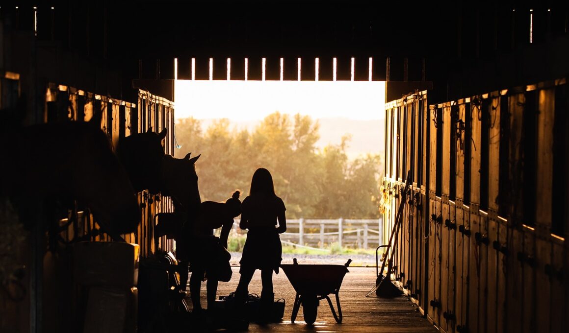 In conclusion, the design of stables is a multifaceted endeavor that deeply influences horse health and performance levels. Considering aspects such as space, ventilation, lighting, safety, and social interaction requires a holistic approach, ensuring a healthy and efficient environment for horses. Stable managers must be diligent in creating adaptable designs that can suit various horses’ needs, accommodating changes in training regimens while ensuring the best quality of care. The impact of stable management extends beyond the physical layout; emotional stability and behavioral health are equally significant. Therefore, ongoing education and open discussion among equestrians and design specialists can enhance stable designs globally, allowing for best practices to be shared. The goal is to foster environments that give horses a chance to thrive and perform optimally, resulting in rewards for owners and trainers alike. By investing time and resources in strategic stable design, the entire equestrian ecosystem can improve, ultimately benefiting horses’ health and enhancing their performance abilities.